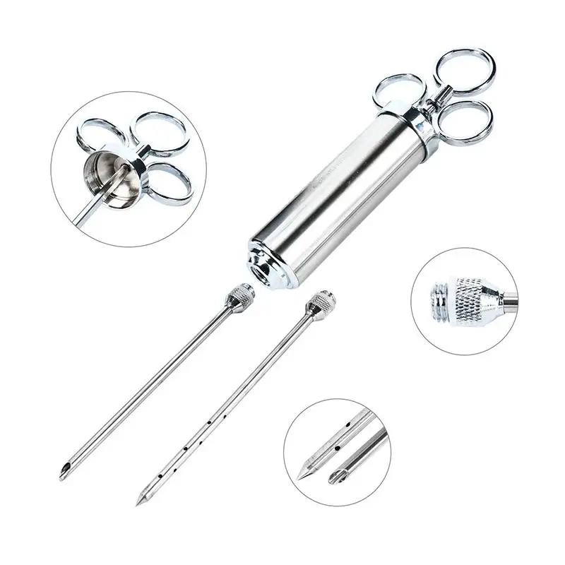 Гриль 2-унций маринада приправа инжектор индейки инъекторы мяса из нержавеющей стали кулинарный шприц инъекции кухонные аксессуары