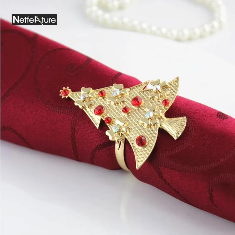 6 шт./лот золото/серебро Рождественская елка салфетка с узором кольцо со стразами металлическая скатерть Пряжка Главная украшение стола рес...