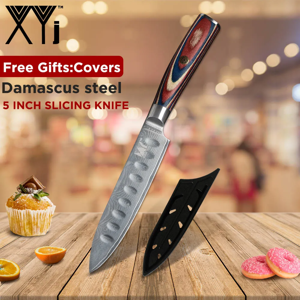 XYj абсолютно VG10 Дамаск Сталь Кухня Ножи 5 "нарезки деревянной ручкой 67 Слои японский Дамаск Пособия по кулинарии Ножи и бесплатная ножи крышк...