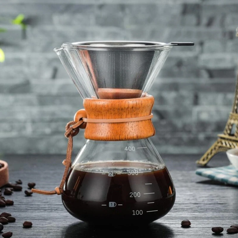 Термостойкий стеклянный кофейник объемом 400 мл с многоразовым фильтром из нержавеющей стали для кофе эспрессо