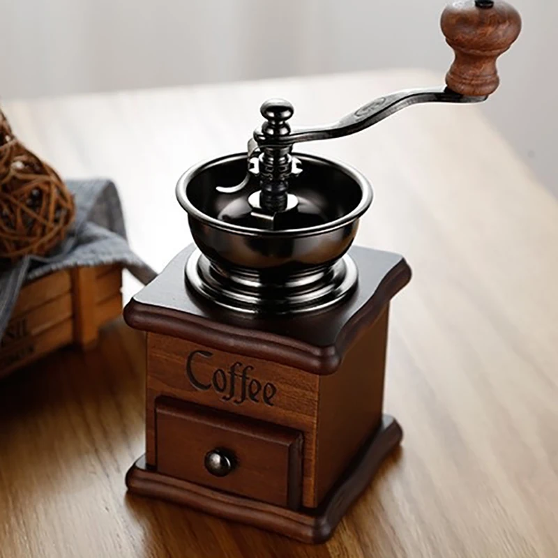 Классическая Ретро нержавеющая сталь ручная кофемолка деревянная кофейная мини-кафе ручная мельница с качественным керамическим жернова