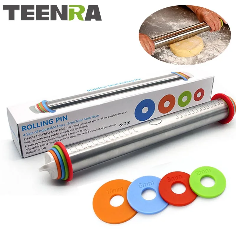 Teenra 1 шт. 44 см Длина Скалка Регулируемая Нержавеющая сталь помады скалкой трафарет для выпечки скалка для теста для выпечки Инструменты