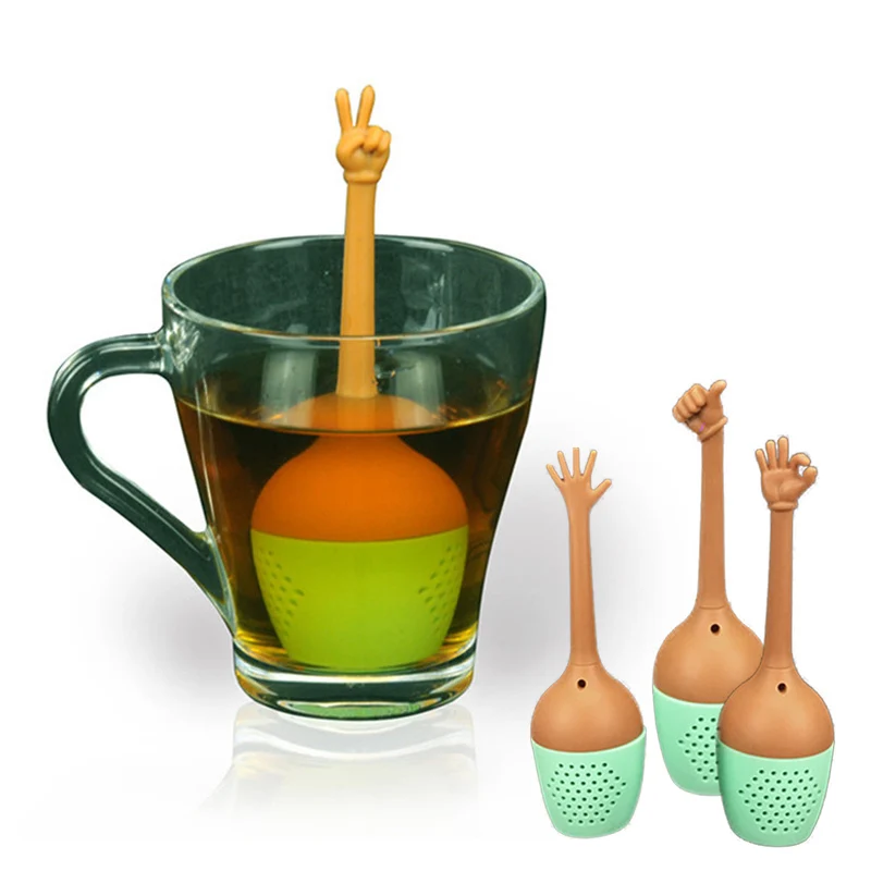 Забавный ручной жесты чайная посуда держатель для специй силиконовый домашний кухонный обеденный бар вкладыш травяной черный чайный ситеч...