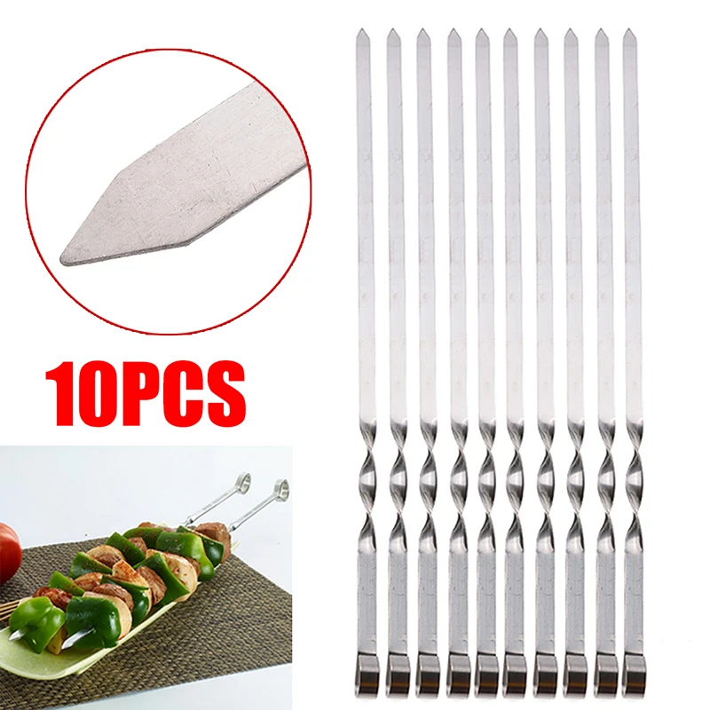 10 шт. 50 см из нержавеющей стали Длинные барбекю кебаб еда шампуры для мяса Открытый Инструменты для гриля шампуры палочки