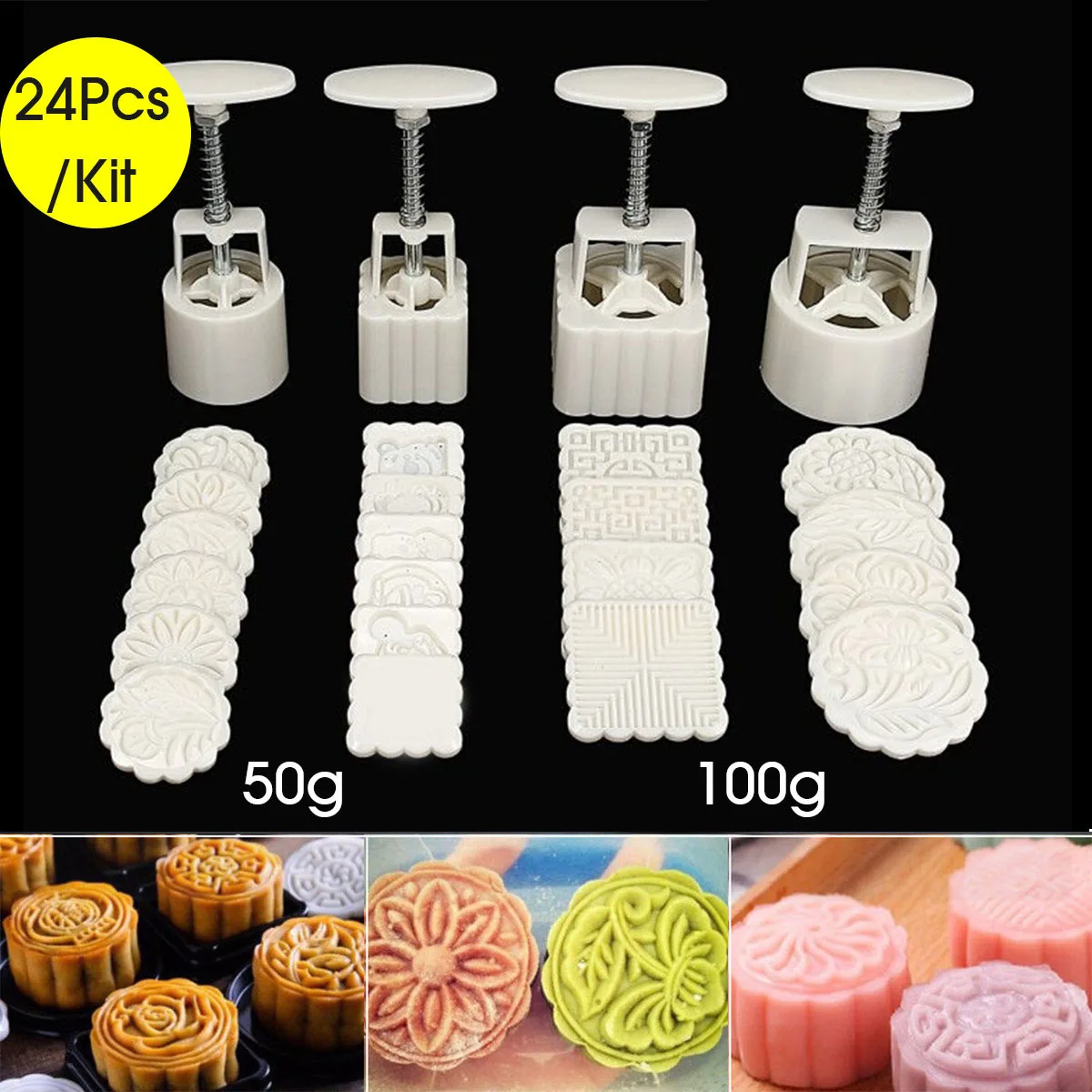 24 шт./компл. цветок круглый квадратный кондитерский форма в виде Луны набор ручной работы льдом лунного торта украшения Печенье DIY инструменты Кондитерские ручные пресс-формы