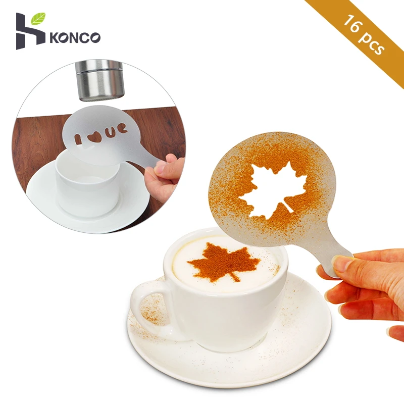 KONCO 16 предмета кофейные трафареты кафе инструменты бариста латте арт-мейкер капучино аксессуары для кофе