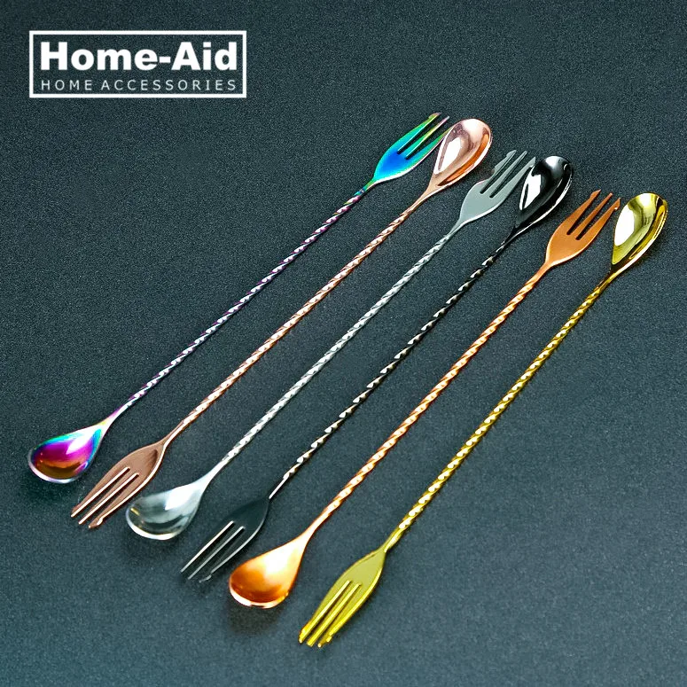 400 мм Коктейльная барная ложка 304 нержавеющая сталь барная ложка с вилкой витая Смешивание ложка Бар Инструмент