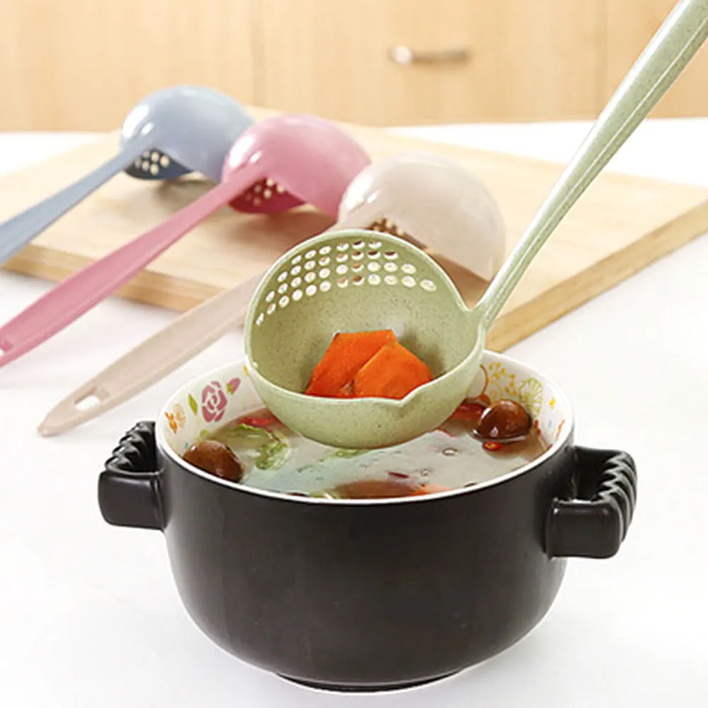 2 in 1 Long Handle Soup Spoon Home Strainer Cooking Colander Kitchen Scoop Plastic Ladle Tableware