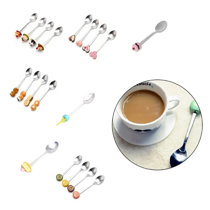 Бренд 1 шт. милый мультфильм чайные ложки торт форме ручки Нержавеющая сталь Кофе ложка дети Scoop Кухня столовая посуда