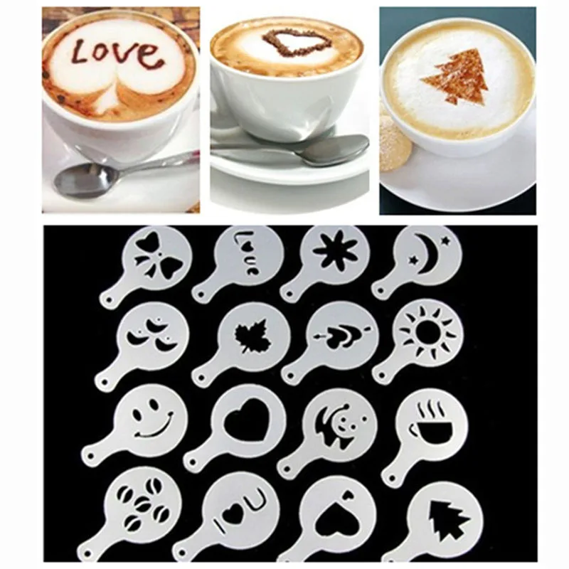 16 шт. пластиковые кофе латте художественные трафареты DIY украшения торта капучино кофейный принт модель пенопласта инструмент (Цвет: Белый)