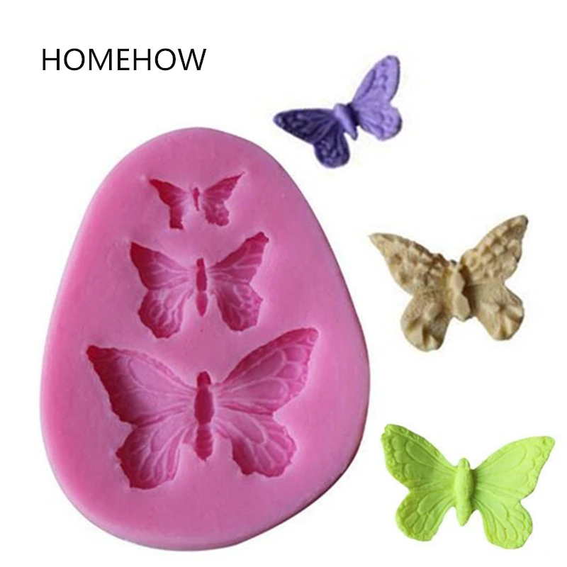 1 шт./лот Яркие бабочки торт декоративные формы Силиконовые Фондант Плесень 3 отверстия бабочка выпечки для торта шоколад Мыло