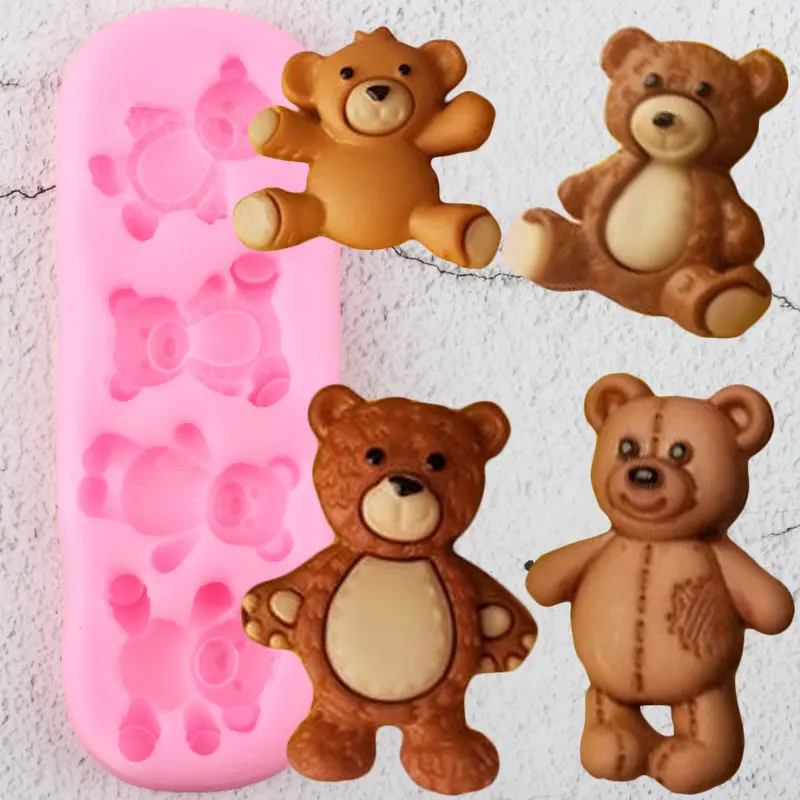 Симпатичные Детские медведи силиконовые формы DIY вечерние Топпер для кексов инструменты для украшения тортов из мастики Полимерная глина ф...