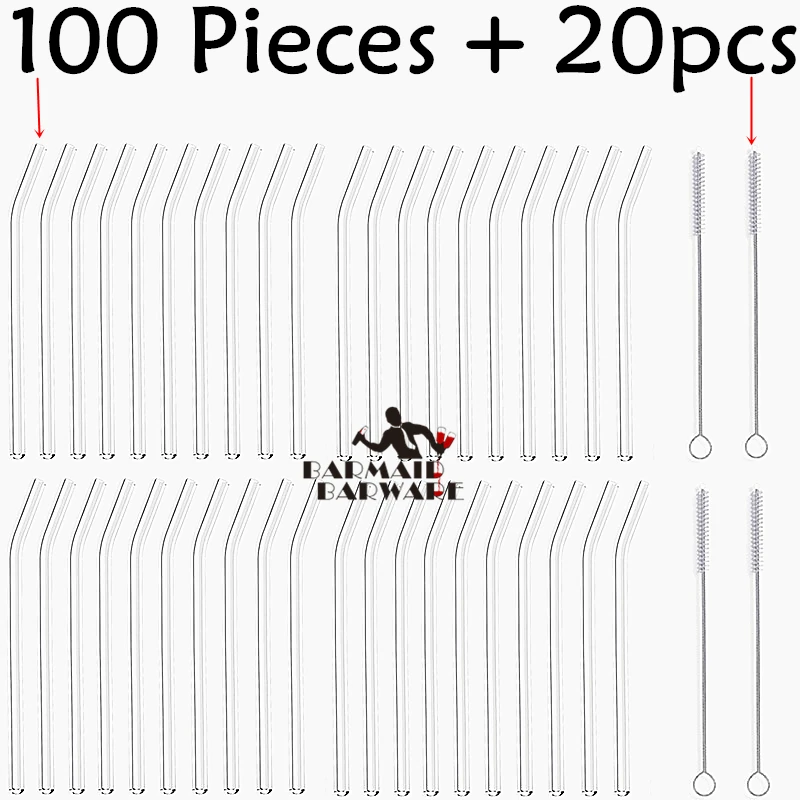 100 шт. стеклянные соломинки прозрачный изогнутый 18 см x 8 мм-идеально многоразовая Солома для смузи, чая, сока-10 упак. С 20 шт. чистящие щетки