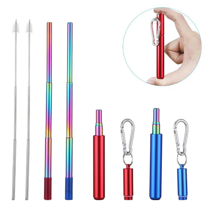 Телескопическая Питьевая солома из нержавеющей стали портативные соломинки для путешествий многоразовые Раскладной Металлический соломи...