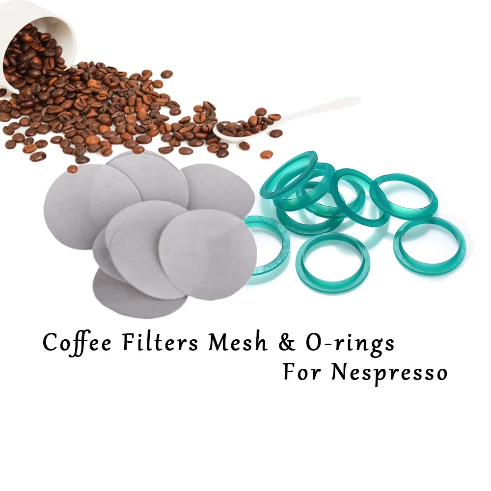 15 шт. Силиконовое уплотнительное кольцо Замена кольца 8 шт. фильтры сетки Совместимость Nespresso нержавеющая сталь многоразовые капсулы кофе ...