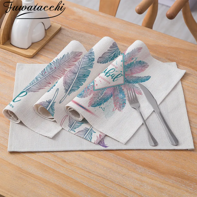 Fuwatacchi настольная салфетка с рисунком Ловец снов, с принтом перьев, коврик для обеденного стола, столовые приборы, кухонный инструмент, кофей...