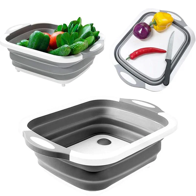 Складная разделочная доска с дуршлагом Складная Многофункциональная Пластиковая силиконовая ванна для мытья посуды слив овощная корзина