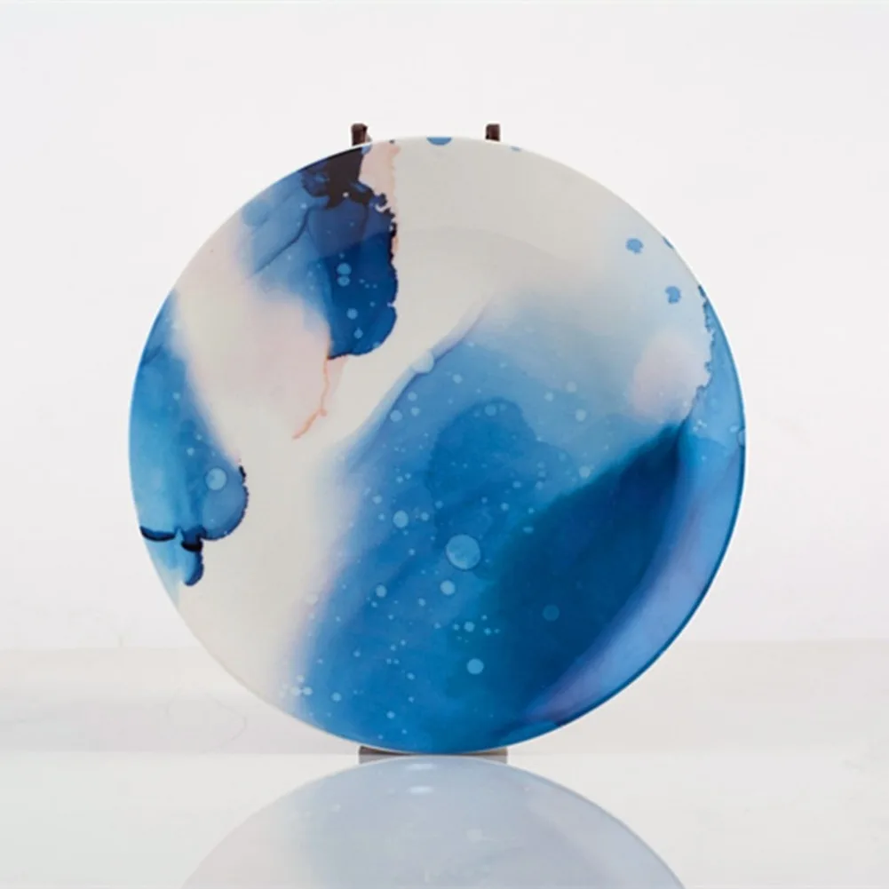 8 дюймов скандинавские круглые керамические пластины неправильная полоса фарфоровая обеденная тарелка десертный стейк поднос для посуды домашняя посуда для вечеринок