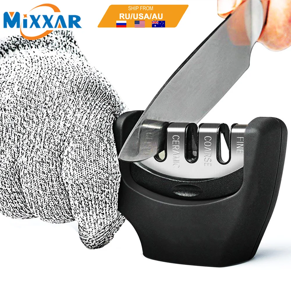 Прямая поставка, точилка для ножей, 3 этапа, Профессиональная кухонная заточка, точильный камень, точильный камень с устойчивыми к порезам п...