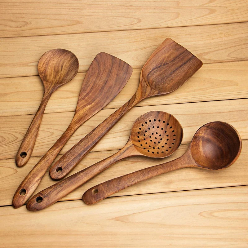 Деревянные ложки, деревянные ложки для приготовления пищи, 5 шт многоразовые деревянные кухонные принадлежности набор инструментов для приготовления антипригарной посуды