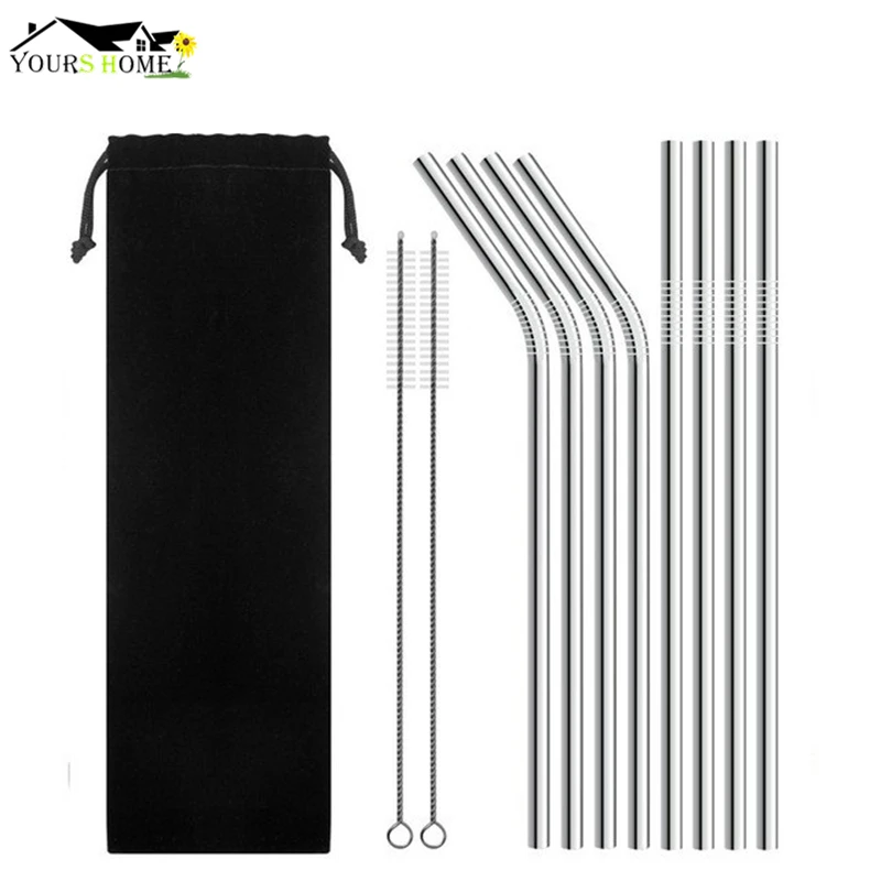 10 шт. Экологичные прямые и изогнутые металлические соломинки из нержавеющей стали многоразовые соломинки для пива фруктовый сок питьевой