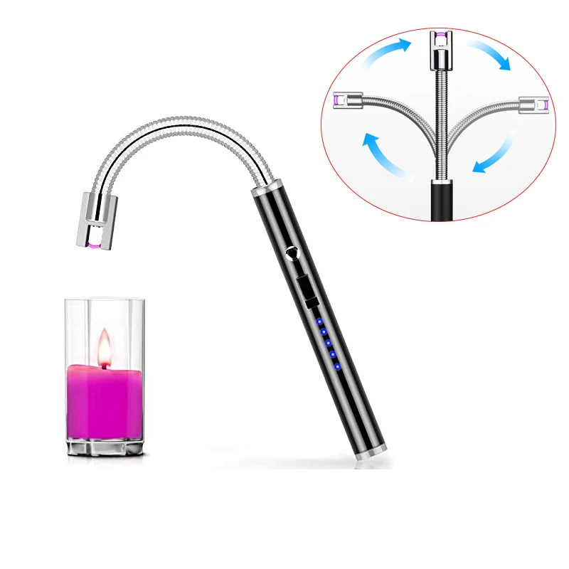 Квадратная электрическая дуговая зажигалка с светодиодный Батарея Дисплей переключатель Зажигалка для свечей USB Перезаряжаемые зажигалка с длинная гибкая шея