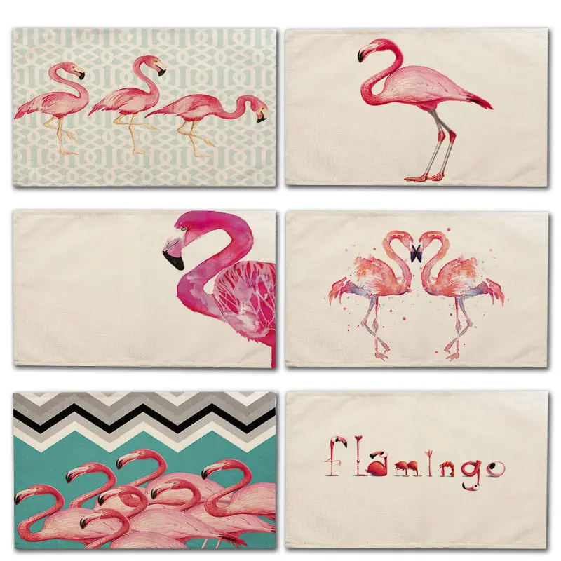 1 шт Фламинго листьев кухонная посуда Чай подставки обеденный стол коврики для подсканников, подложки из хлопка и льна Pad 42*32 см домашнего де...