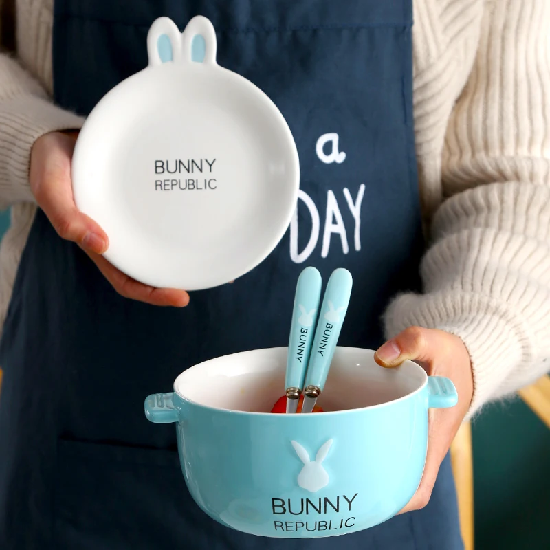 OUSSIRRO мультяшный кролик креативная миска для лапши с крышкой керамическая чаша Милая Студенческая чаша для супа