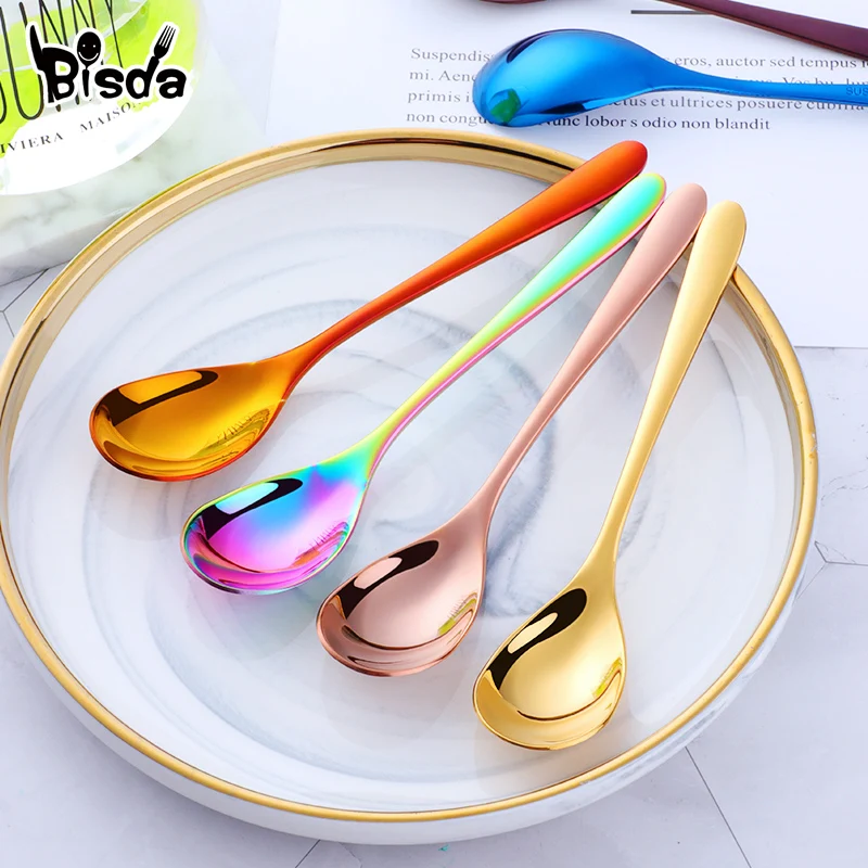 8 шт. Чай Кофе суп Мёд десертная ложка Металл 18/10 Нержавеющая сталь Радуга посуда столовые приборы детская мини ложки