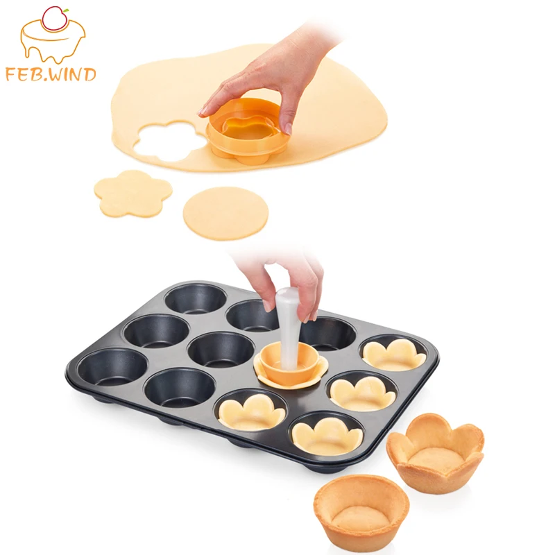 Пластиковый пирожный трамбовщик кондитерских трамбовок цветок/круглый тесто печенья резак тарте мини-пирожная оболочка/корка форма для ке...