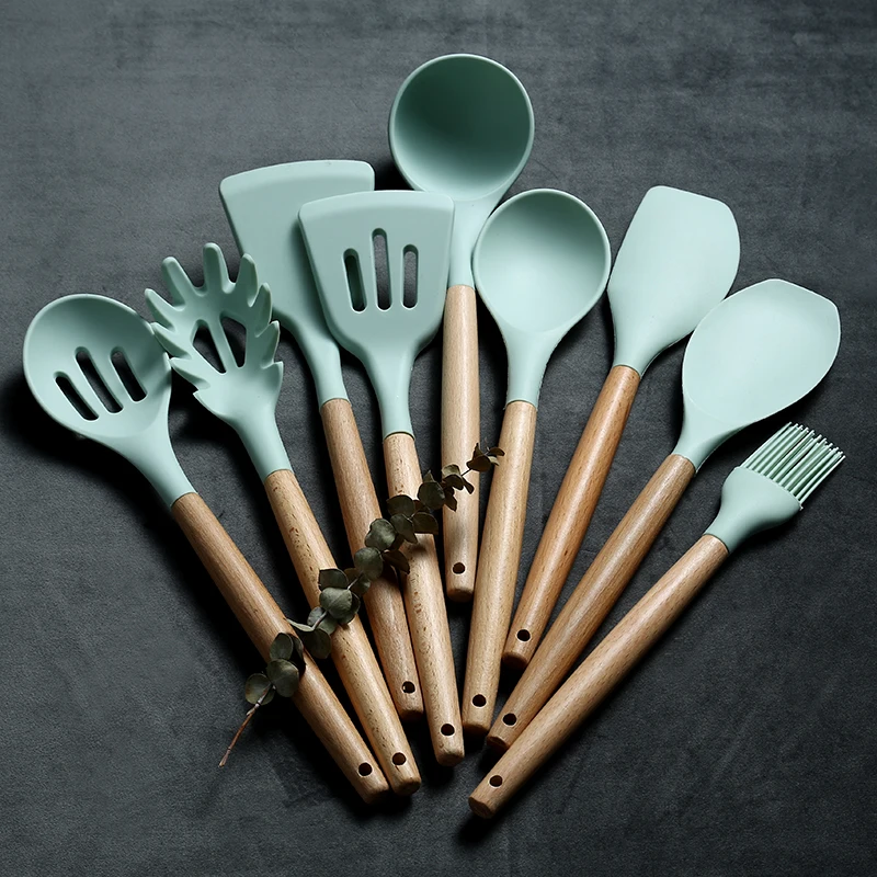 Силиконовая лопаточка ложка щипцы посуда термостойкая суповая ложка антипригарная лопата с деревянной ручкой кухонный инструмент для при...