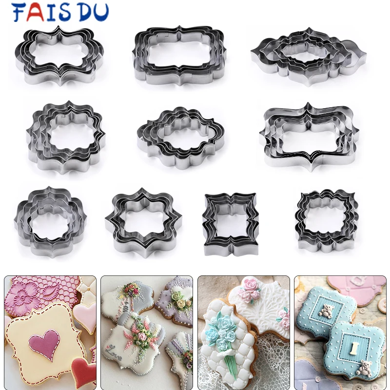 4 шт./компл. Нержавеющая сталь Fondant (сахарная) для приготовления печенья в форме штампа табличка Свадебные печенья кружевное благословение круглый в форме цветка Рамка для украшения тортов