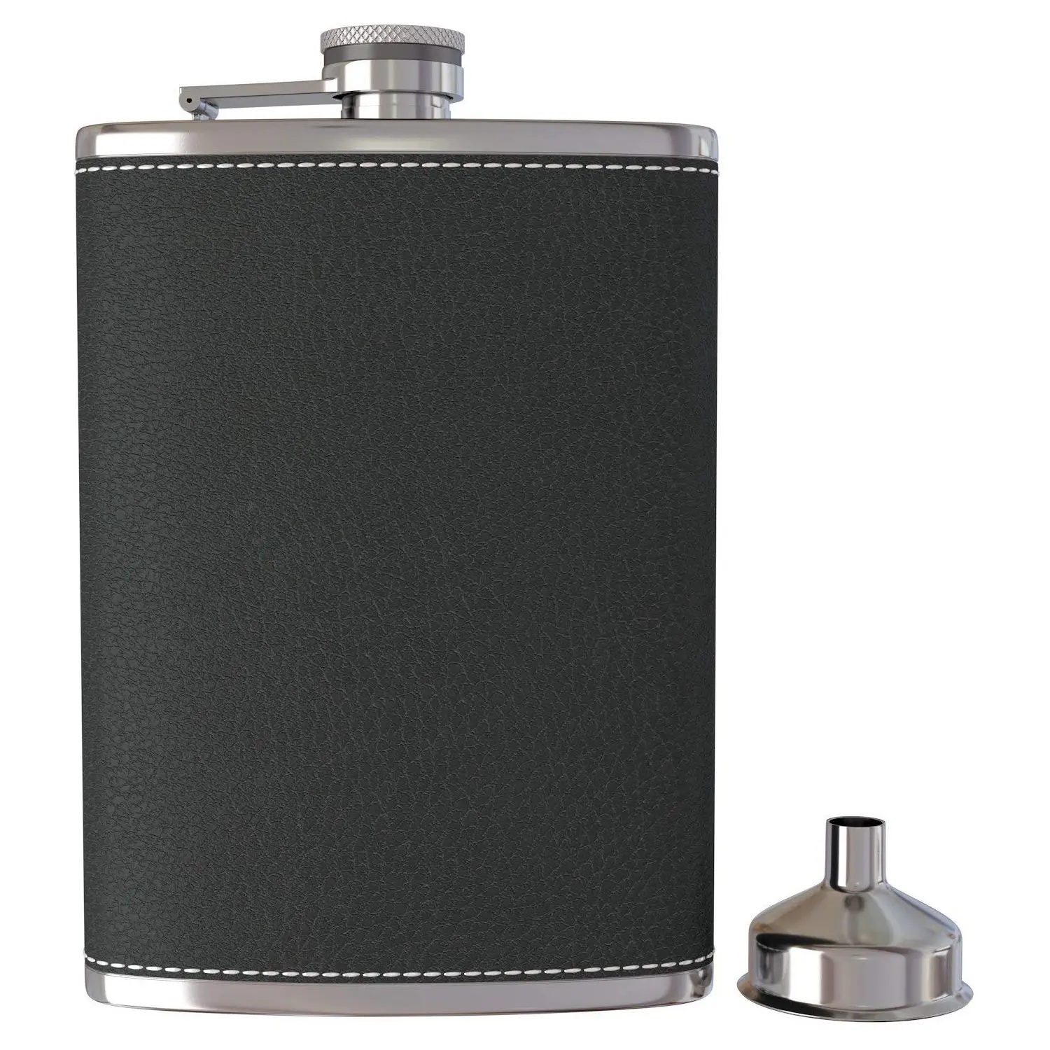 Карманная тазобедренная колба 8 унц. с воронкой из нержавеющей стали с крышкой черная кожа, обернутая и герметичным-подходит для любого кост...