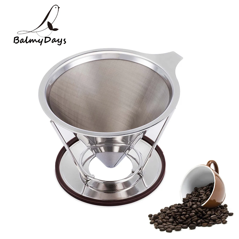 Нержавеющая сталь Кофе корзина фильтра многоразовые сетки Кофе фильтр конуса залить Кофе Dripper с подставкой безбумажной Кофе Maker