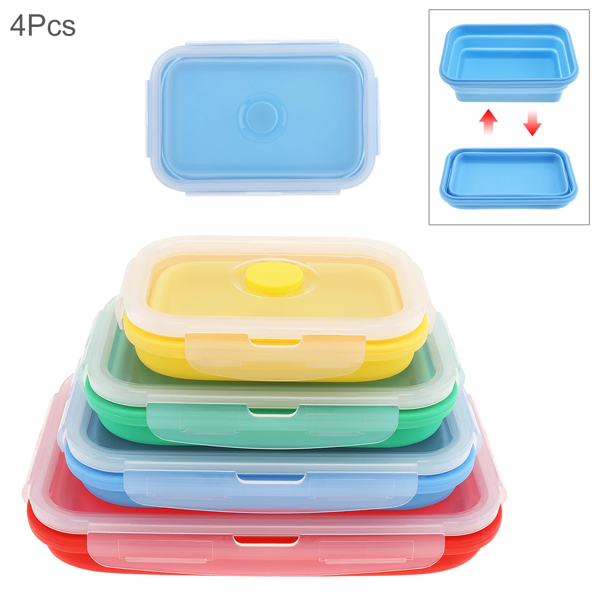 4 шт./компл. 350/500/800/1200 мл портативный прямоугольник складной силиконовый масштабируемый складной Ланчбокс Bento коробка с уплотнительной вилкой