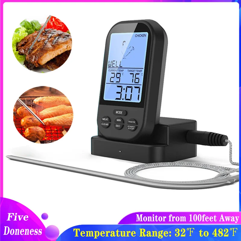 Беспроводной цифровой термометр для мяса-пульт дистанционного барбекю Кухонный Термометр для духовка-гриль Smoker с таймером-входит в компле...