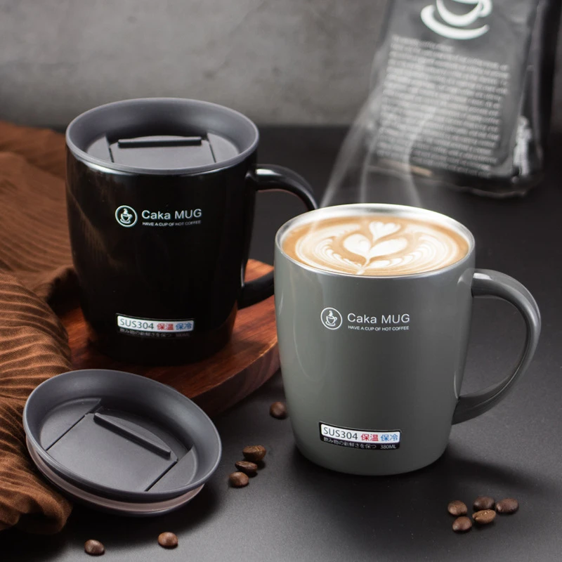 380 мл ручка кофейная кружка из нержавеющей стали термос чашки вакуумная колба для взрослых бизнес чашки воды с ручкой крышкой для офиса