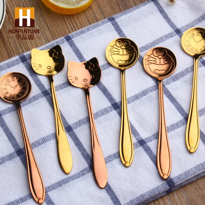 Маленькая 304 ложка для кофе из нержавеющей стали ложка для перемешивания чайная ложка Милая мультяшная кошка hello kitty Дораэмон часы Время Мед...