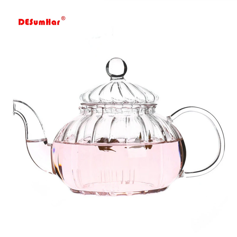 600 мл полосатый тыквенный цветочный чайник, термостойкий стеклянный горшок, Цветочный чайный стаканчик, стеклянный чайный горшок с травяным листком для заварки чая