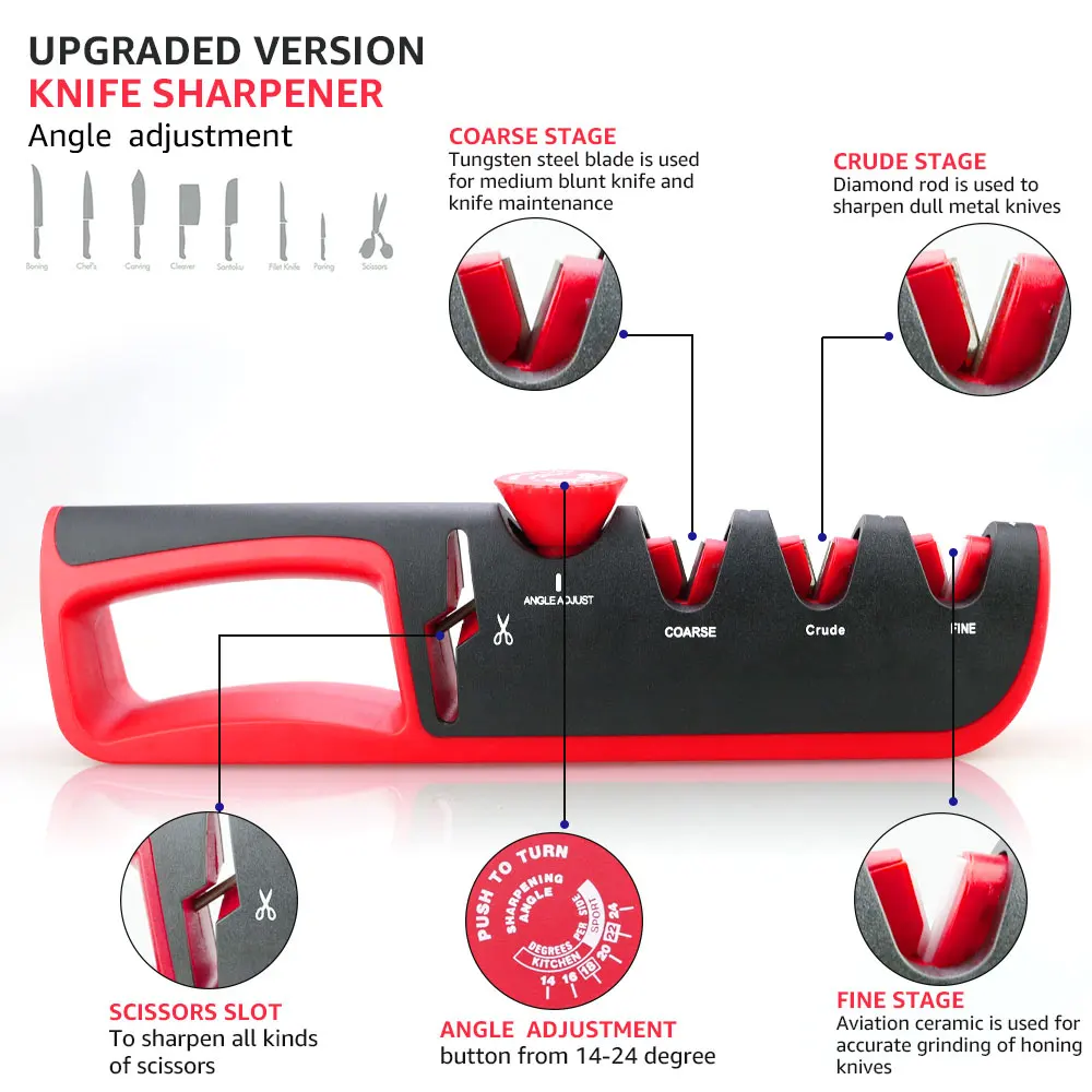 Точилка для ножей с регулировкой угла, 4 этапа, ножницы для заточки камня, Профессиональная кухонная шлифовальная машина, ножи, точильный камень, инструмент