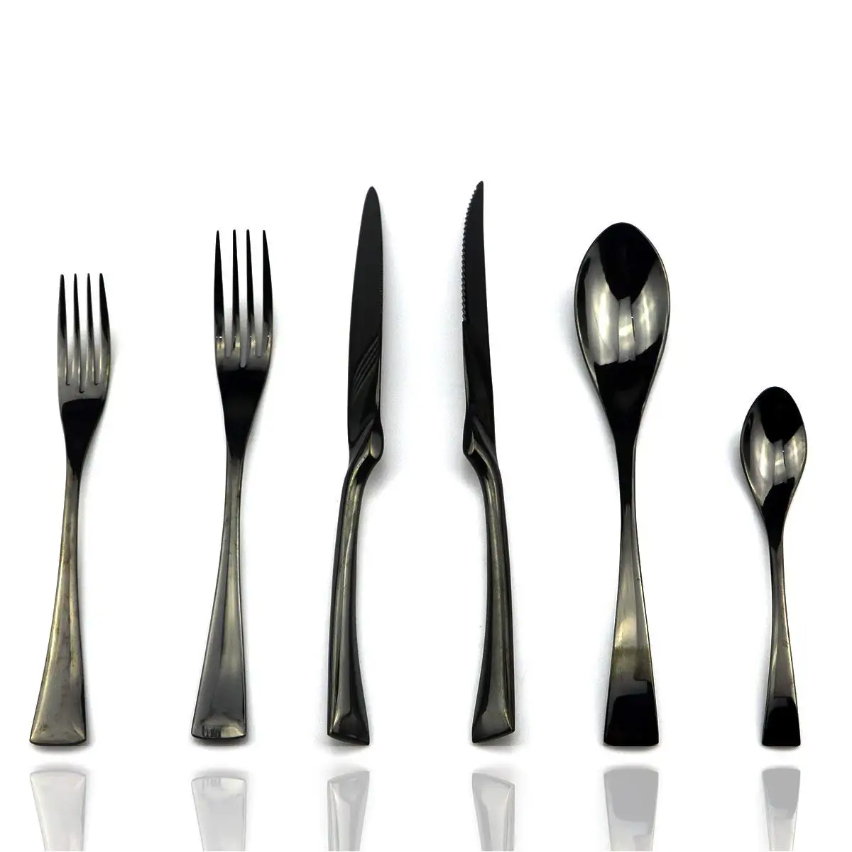 6 шт./компл. черный с десертной вилкой Ложка Портативный набор столовых приборов набор посуды 304 Зеркало из нержавеющей стали столовое сереб...