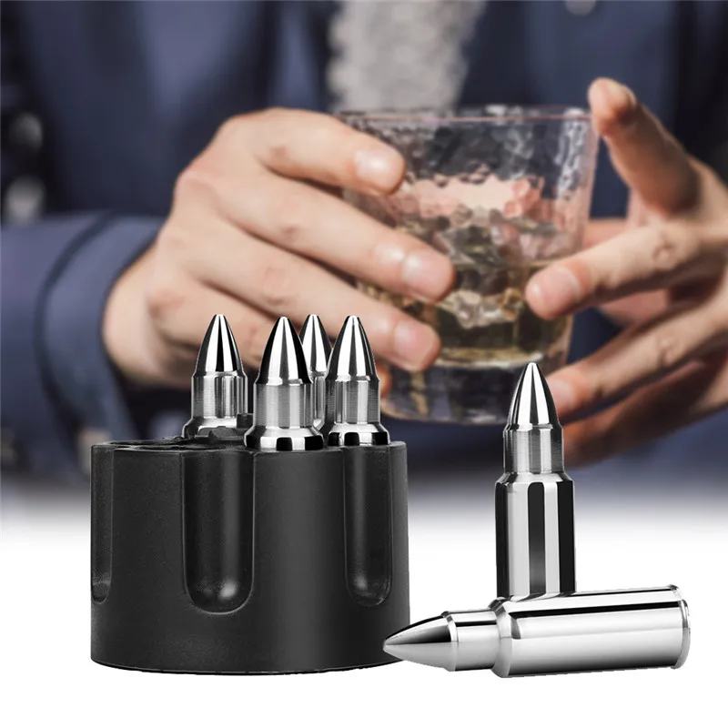 Камни для виски Ice Cube 6 с лазерной гравировкой из нержавеющей стали серебряные пули револьвер бочонок основание многоразовые леденцы камни камень