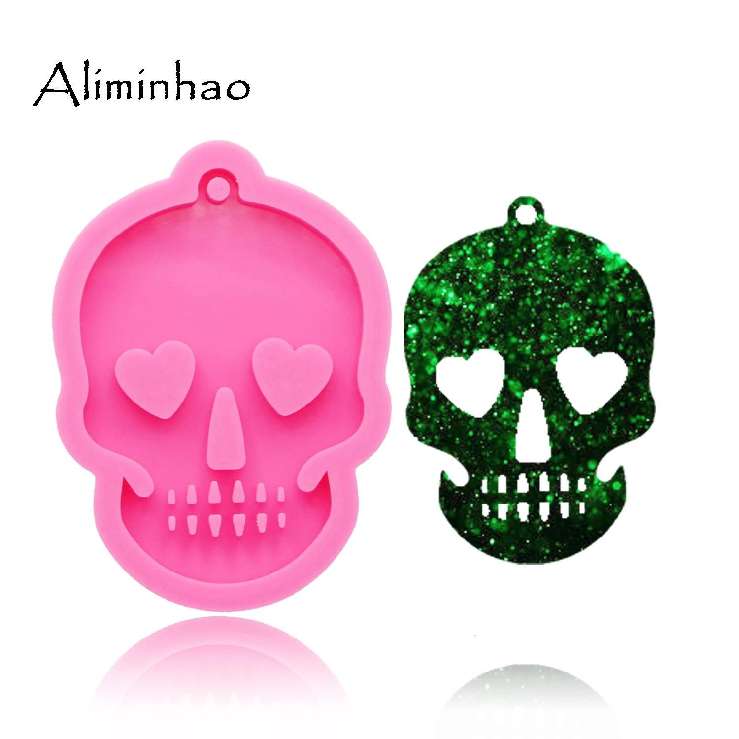 DY0081 блестящая голова призрака череп силиконовые брелоки форма брелок кулон глина DIY ювелирных изделий эпоксидная смола, форма