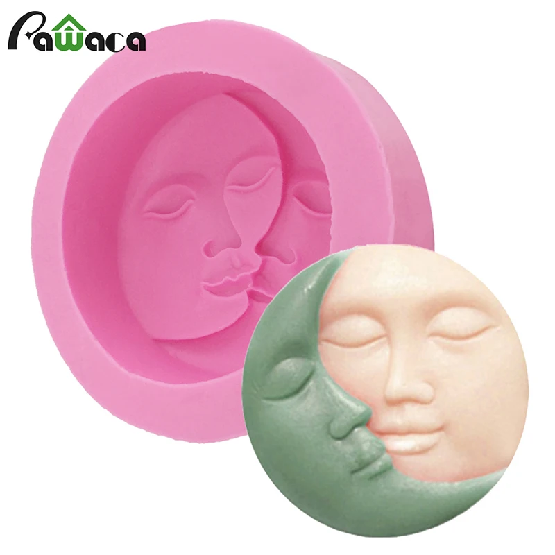 Sun and Moon Face силиконовая форма ремесло набор для работы с мастикой «сделай сам» Шоколад Мыло Плесень ручной работы Полимерная глина, воск, кар...