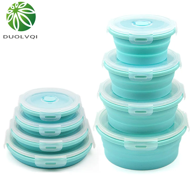 Duolvqi 3/4 шт. набор складной фруктовый салат силиконовая коробка для ленча контейнер для пищи круглой формы, посуда BPA бесплатно