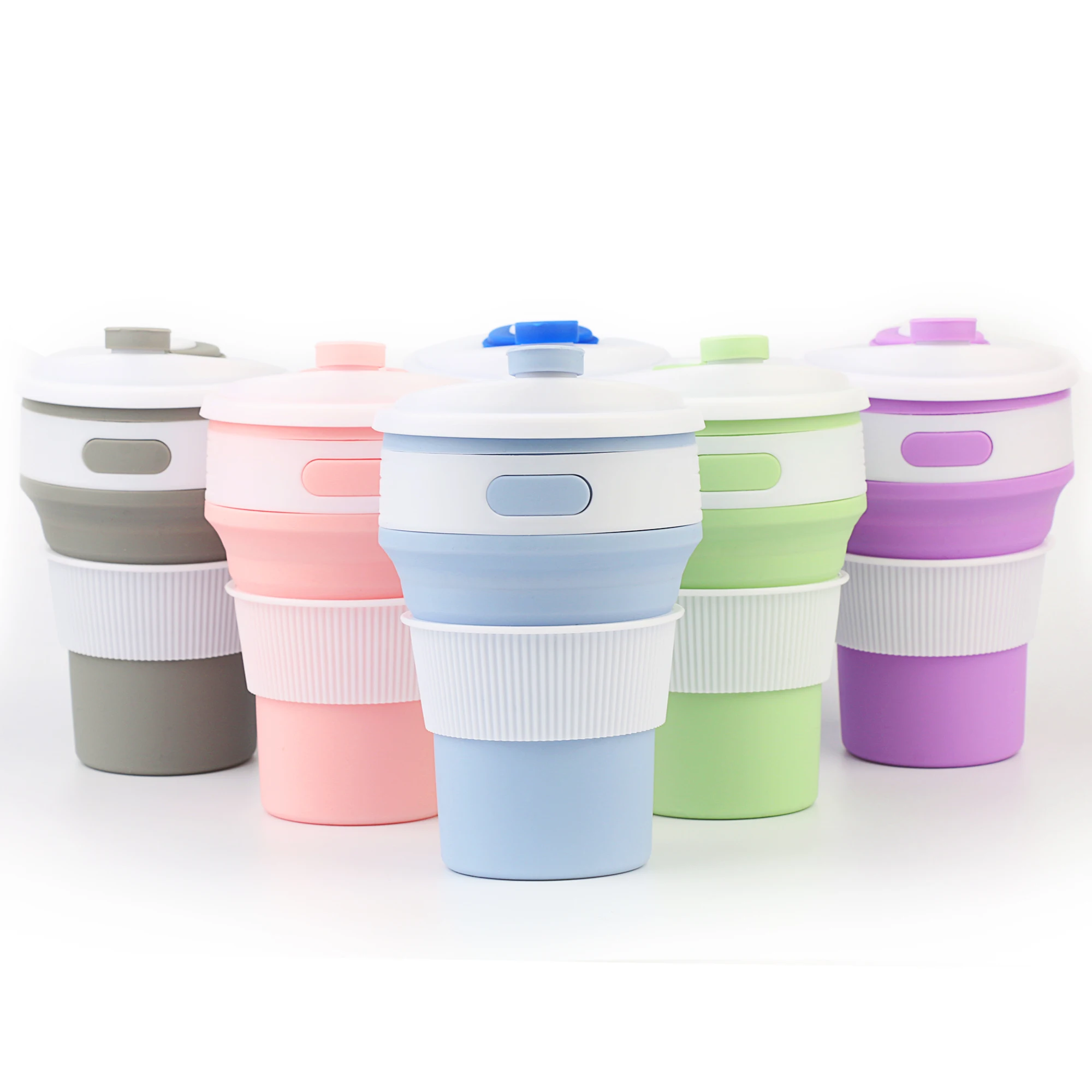 Складная кофейная кружка-портативная силиконовая телескопическая Питьевая Складная кружка из кремнезема 12 унций Питьевая чашка с крышкой для водного котла