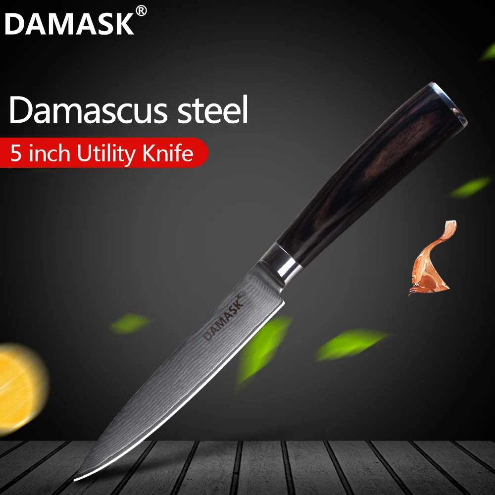 Дамаск ножи 5 дюймов Многофункциональный кухонный нож Цвет деревянной ручкой 73 Слои VG10 японские ножи из дамасской стали режущие инструмент...
