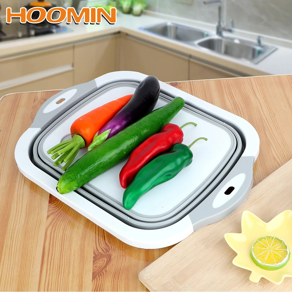 HOOMIN Складная Силиконовая разделочная доска для овощей складные Разделочные Блоки корзина для фруктов Фильтр моющийся Кемпинг разделочная подставка