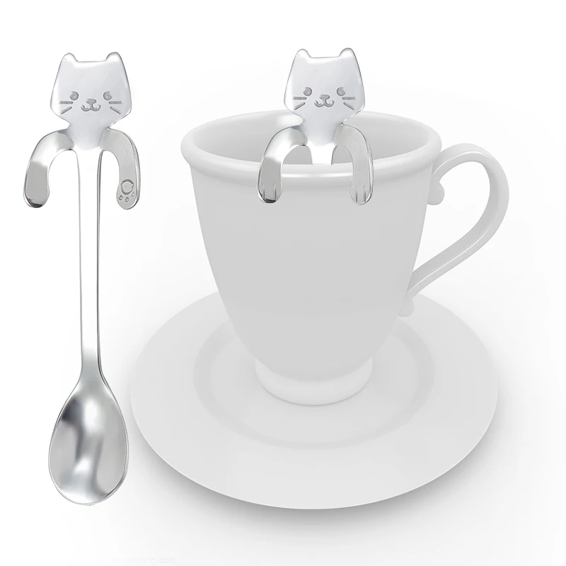 Нержавеющая сталь мультфильм кошка ложка с длинной ручкой столовые приборы кофе для питья кухня гаджет