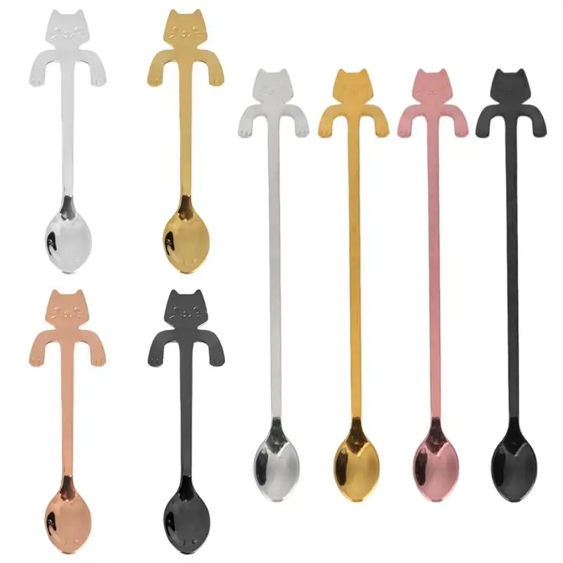 Креативная подвесная ложка из нержавеющей стали милая форма кошки смешивающая ложка с длинной ручкой для кофе